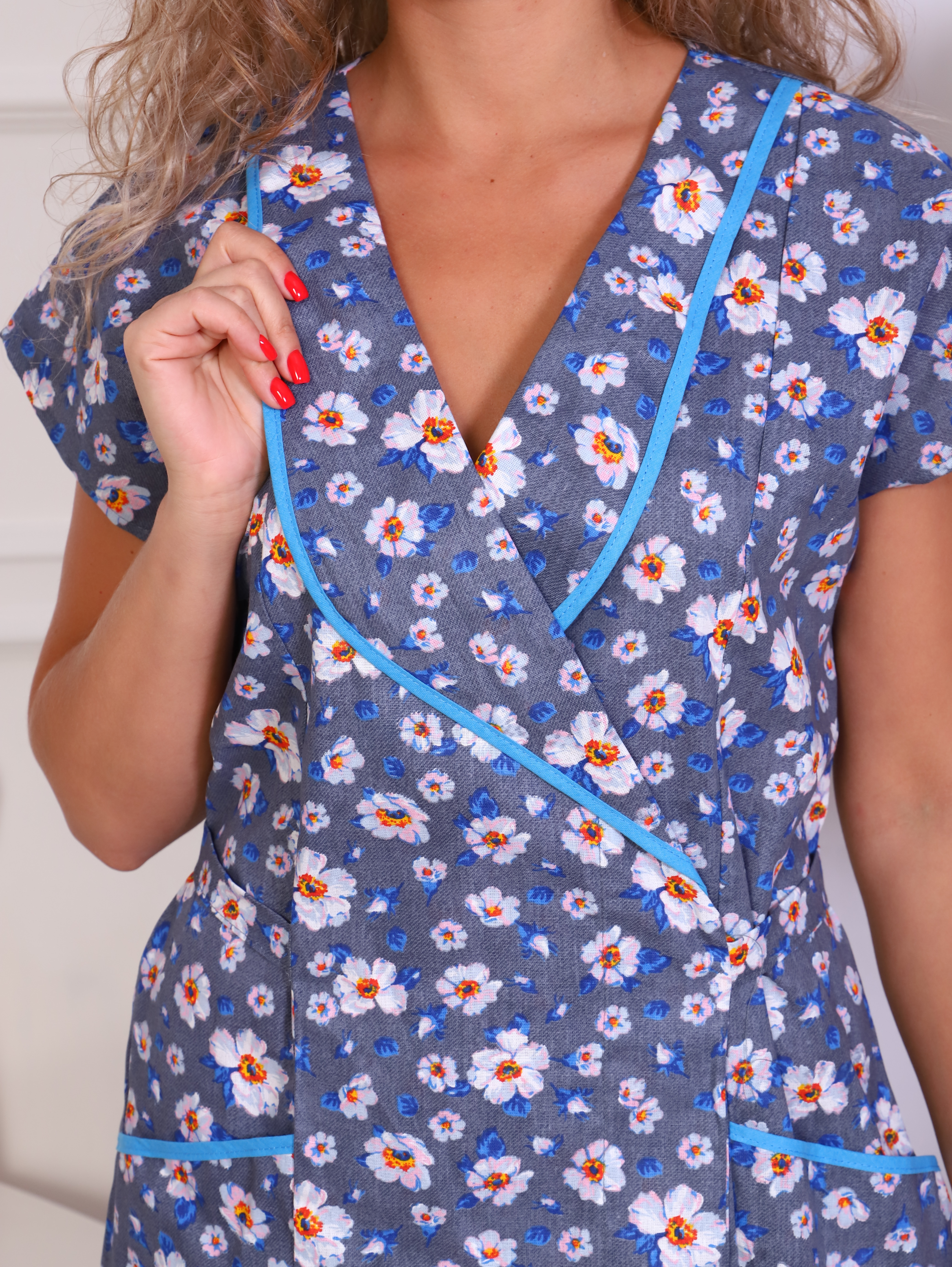 Халат домашний бязевый выполнен из натурального хлопчатобумажного материала из бязи - 100% хлопок.