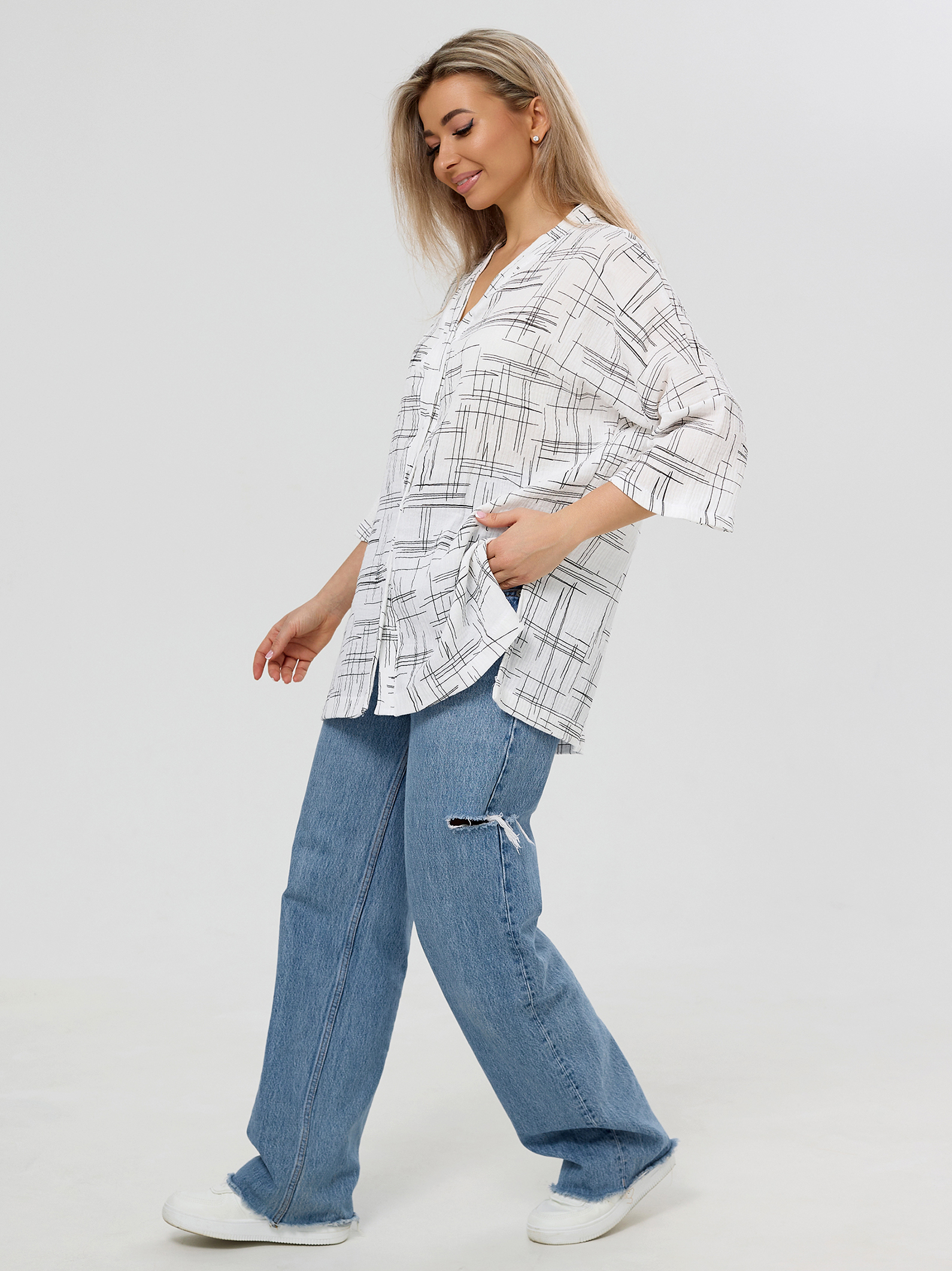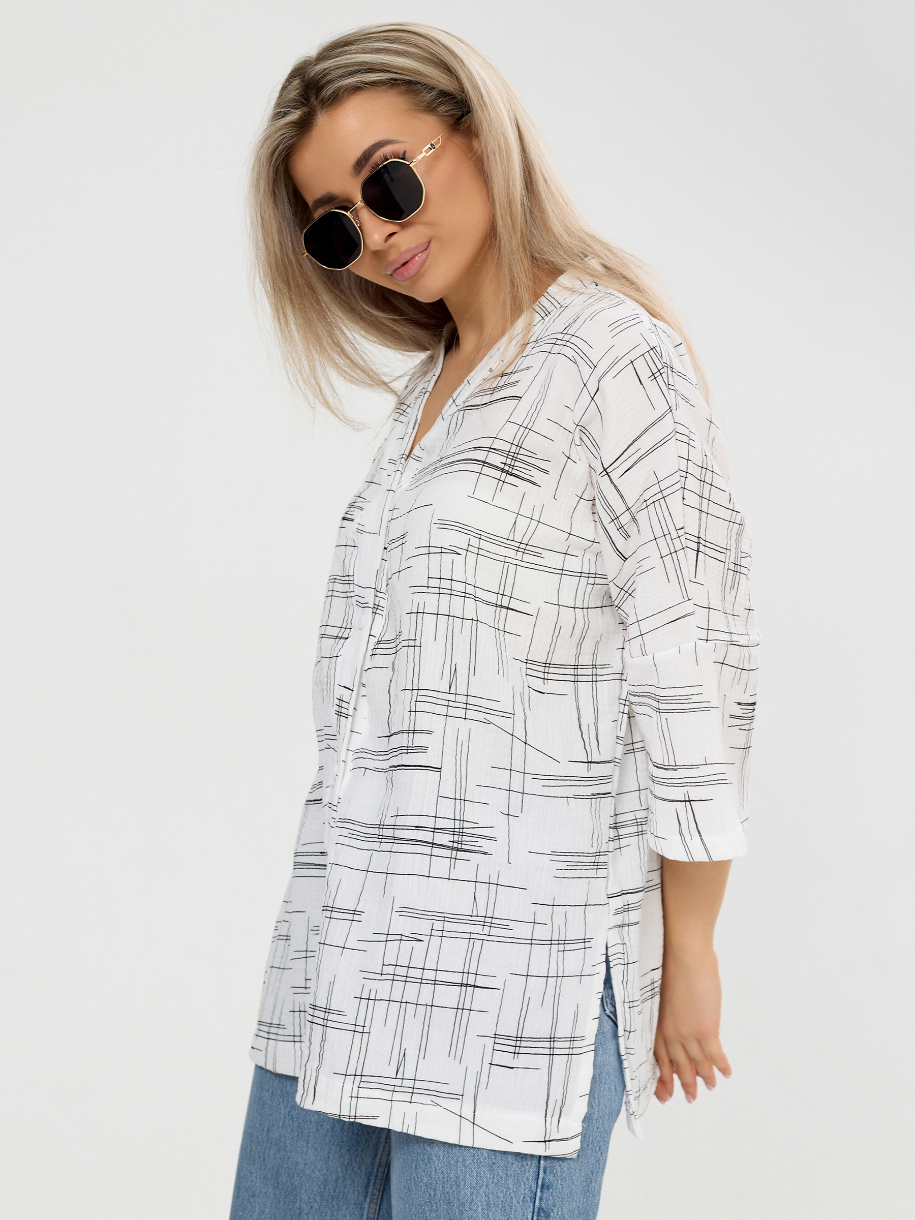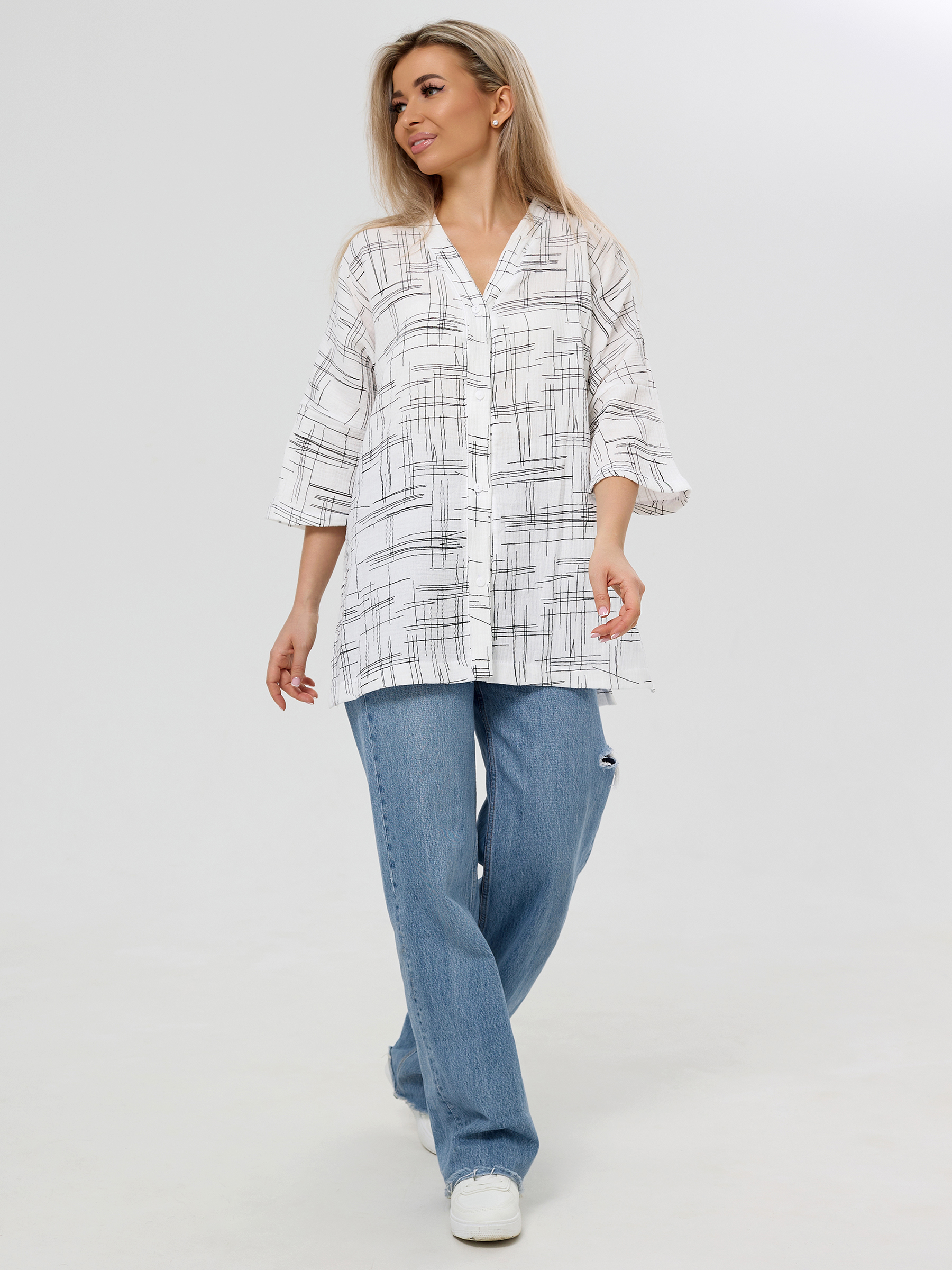 Летняя муслиновая туника на пуговицах для женщин.